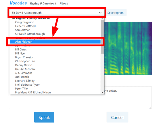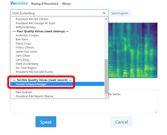 Vocodes는 입력한 텍스트를 유명인의 목소리로 웹 브라우저에서 소리 내어 읽게 할 수 있는 텍스트 to 스피치 웹 응용 프로그램입니다. 엔지니어 Brandon Thomas 씨가 무상으로 공개하고 있기 때문에 실제로 여러 유명 인사가 낭독을 해주었습니다.