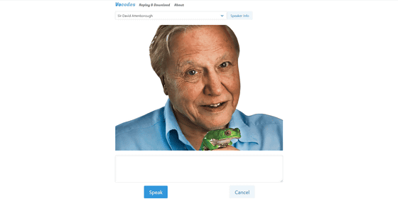 Vocodes에 액세스 하시면 동물 학자 데이비드 애튼버러씨의 사진이 나오네요.