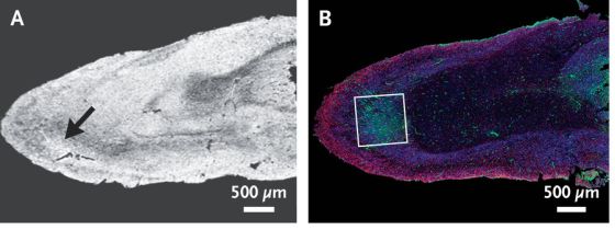 실제로 관찰된 뇌 조직의 현미경 사진은 이런 느낌으로, 오른쪽 사진에서 혈액을 응고시키는 물질 "피브리노겐"이 녹색으로 물들어있고, 녹색 선이 밀집된 부분은 "조직이 손상되어 출혈 때문에 피브리노겐이 분비된 것"이라고 합니다. 이 관찰 결과에서 연구팀은 10명의 환자가 뇌에 작은 손상을 입었다고 결론 지었습니다. 또한 연구팀의 일원인 아빈도라 · 나스 씨에 따르면, 이러한 손상은 뇌의 특정 부위뿐 아니라 여러 부위에서 발견되었다는 것입니다.