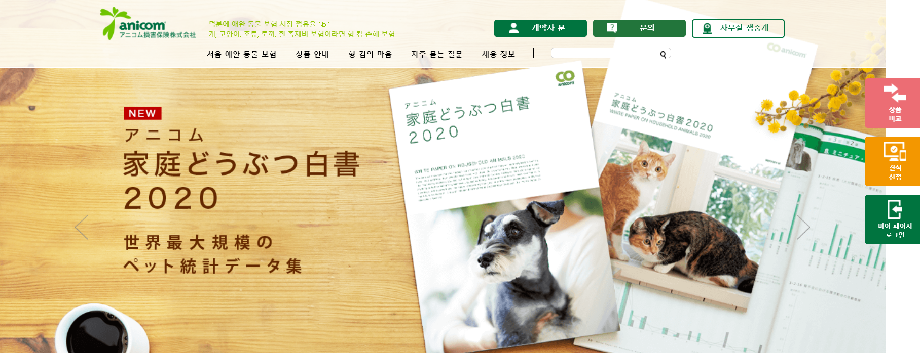 애니컴 사에서는 지금까지도 애완동물 보험 청구 자료를 분석한 자사의 질병 통계를 이용하여 애완동물의 품종과 연령 · 성별 등에 따라 걸리기 쉬운 질병을 공표하고 주인에게 지식을 보급하여 '예방'에 중점을 두고 있다고 합니다.