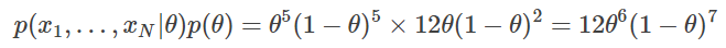 사후 분포는 θ의 함수로서
