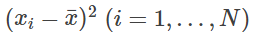 로 정의됩니다. 각 데이터 xi(i=1,…,N) 값에서 그 평균값