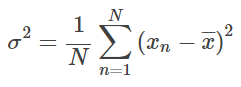 의 평균을 계산합니다. 이것은 "데이터가 자신의 평균보다 얼마나 흩어져 있는지"를 나타냅니다. 평균이 같은 데이터라도 많은 데이터가 평균 근처에 모여있으면 분산은 작고, 평균보다 매우 큰 데이터나 작은 데이터가 많으면 분산은 커집니다. 분산에는 또 다른 종류가 있습니다. 그것은 아래와 같습니다.