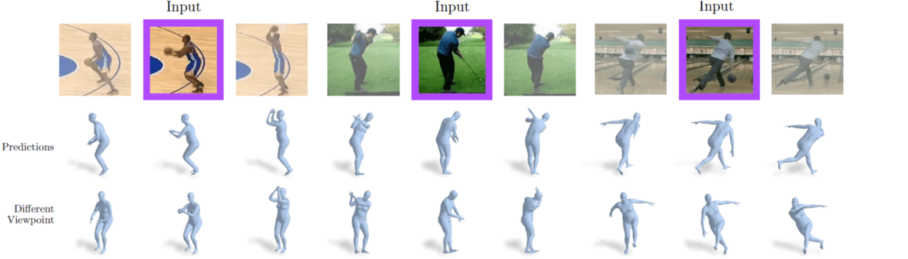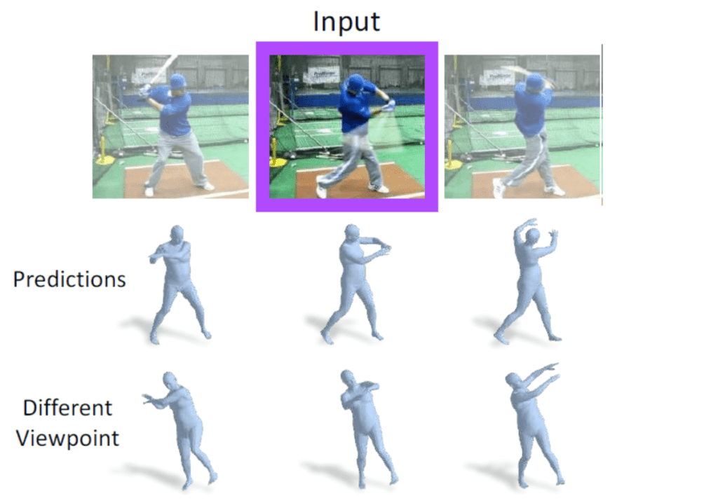 스틸 이미지에 찍혀있는 인물의 3차원 모션을 복원합니다. 실제 입력과 출력을 아래 그림으로 나타냅니다.