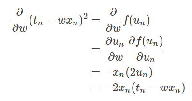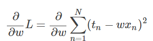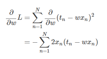 그럼 구체적으로 이번에 결정한 목적 함수 L을 매개 변수 w로 미분해 봅시다. 미분에 대한 기본적인 계산법과 성질은 앞 장에서 소개했습니다.