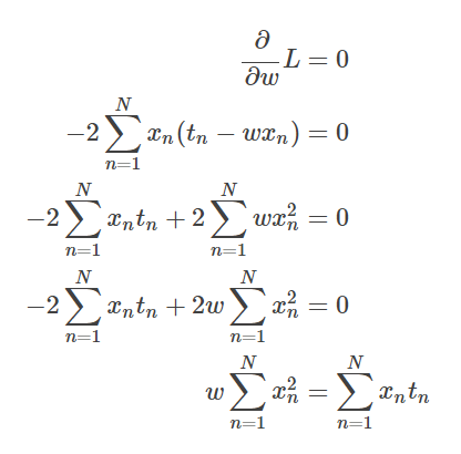 로 정리됩니다. 이를 최적 w라고 합니다. 이 값은 주어진 데이터 세트