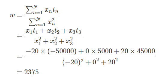 앞장의 월세 예제에 주어진 수치로 매개 변수 w를 구해봅시다.