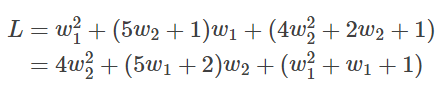 가 되고, w1, w2 각각의 이차 함수가 되어 있다는 것을 알 수 있습니다.