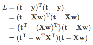 우선 목적 함수에 등장하고 있는 예측치 y를, 매개 변수 w를 이용한 표기로 바꿔줍니다.