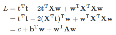 로 변형할 수 있습니다. 여기서 w에 대한 편미분을 쉽게 하려면, w 이외의 정수 부분을 하나로 묶어줍니다.