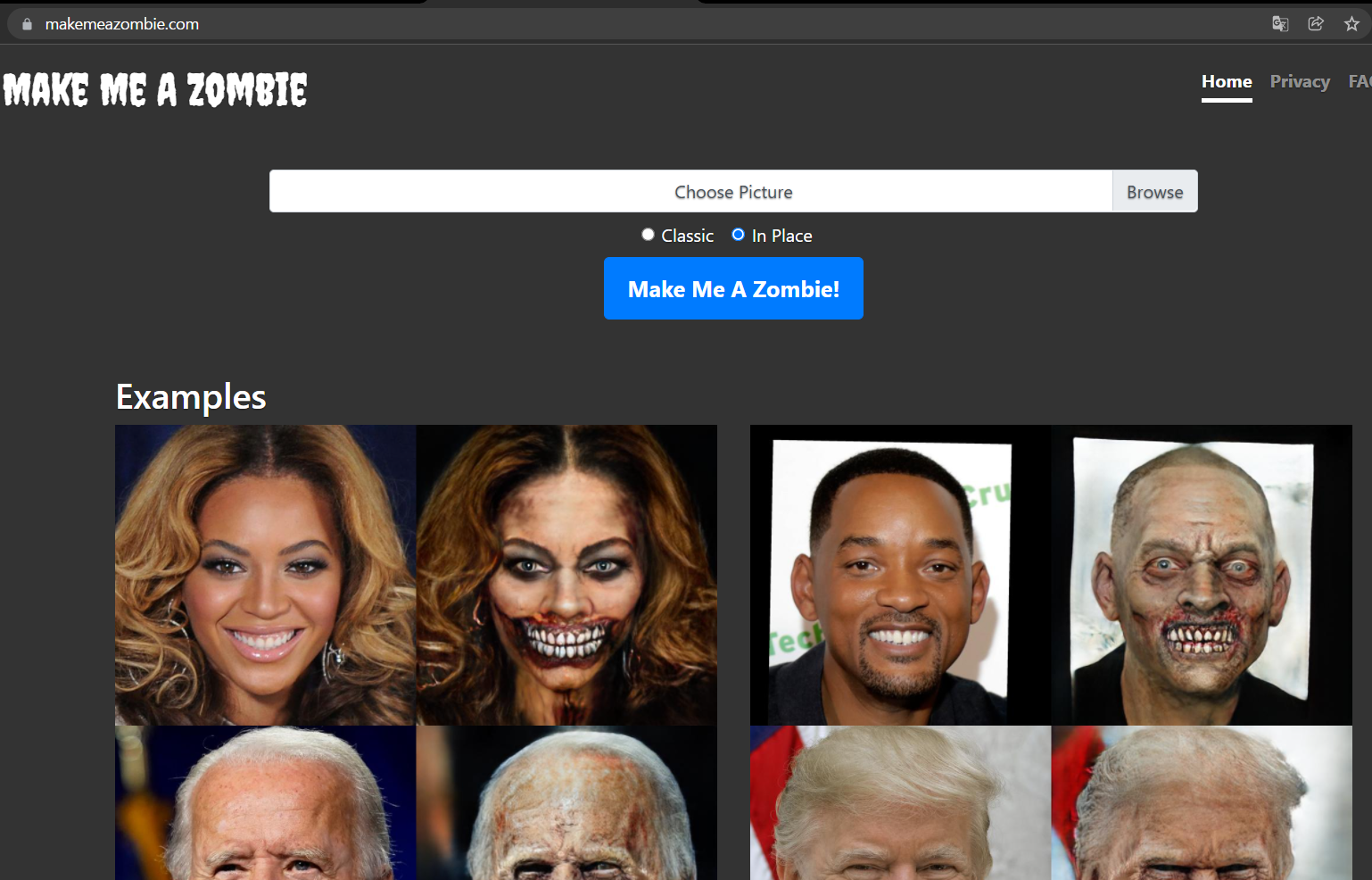 공식 사이트에 따르면 사진을 좀비화시키기 위해서는 밝은 조명 속에서 촬영한 고해상도의 사진이 좋다고 합니다. 또한, 인물이 사진의 대부분을 차지하는 것이 좋고, 카메라를 향해 똑바로 향하고 있을 필요가 있다고 합니다.