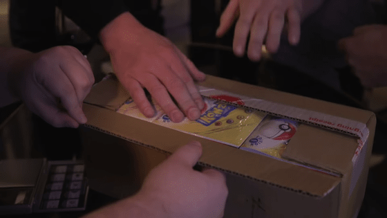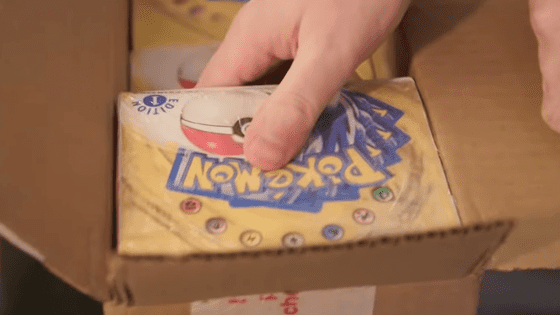 포켓몬 카드가 담긴 골판지 상자가 이것. 이 상자는 판매 시점부터 지금에 이르기까지 미개봉이라고 되어 있어, 「미개봉인 것」, 「초기의 포켓몬 카드에 사용되고 있던 상자와 같은 것」이라고 Baseball Card Exchange(BBCE)에 의해 입증되었습니다. BBCE는 빈티지 스포츠 트레이딩 카드 딜러로 유명하며, BBCE에 의한 증명은 신뢰할 수 있다고들 합니다. San씨도 「BBCE의 증명이 있었기 때문에 샀다」라고 말할 정도.