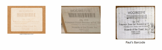 또한 포켓몬 카드 전문가인 Rattle Pokemon은 상자에 붙여진 라벨에 눈을 돌려 거기에서 상자가 가짜인 이유를 해설하고 있습니다. 오랫동안 포켓몬 카드를 판매해온 게임 회사인 위저즈 오브 더 코스트는 항상 제품 코드와 해당 라벨을 패키지에 붙여 넣었습니다. 폴씨 가 손에 넣은 상자에도, 초판( 1st Edition)을 나타내는 코드 「WOC06033 1E」가 붙어 있습니다만, Rattle Pokemon씨는 「초판은 초판이라도, 1E 의 코드가 붙여진 것은 확장팩이 판매되고 나서이며, 폴씨가 구입한 기본팩의 시대에 1E가 붙여진 예는 지금까지 확인된 적이 없습니다」라고 지적.