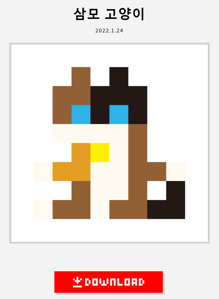 도트 그림이 크게 표시되고 그 아래에 "DOWNLOAD"버튼이 표시되었습니다. 이 DOWNLOAD 버튼을 클릭하면 도트 그림을 PNG 형식의 이미지로 다운로드할 수 있습니다.