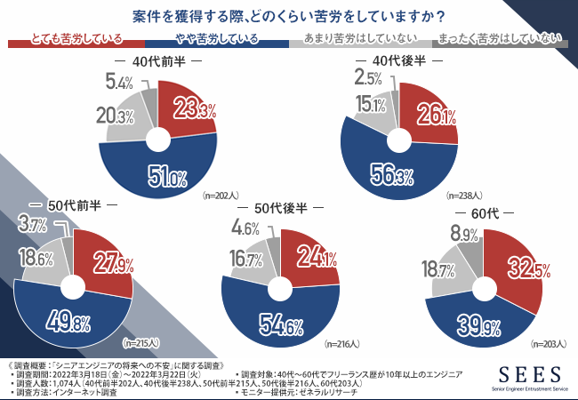 주식회사 Miraie 는 2022년 4월 12일 40~60대의 경력이 10년 이상인 프리랜서 엔지니어를 대상으로 '시니어 엔지니어의 미래에 대한 불안'에 대하여 조사 결과를 발표했습니다.