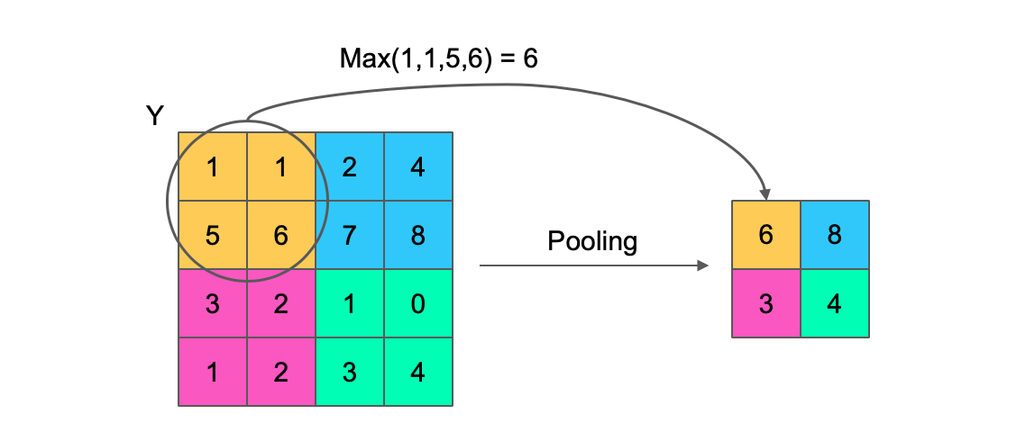 예를 들어 최대 풀링(max pooling)이라고 하는 풀링은 특정 범위의 최댓값을 추출하여 데이터를 압축합니다.
