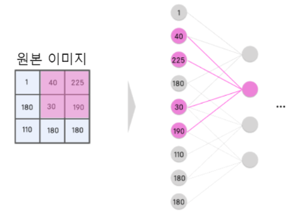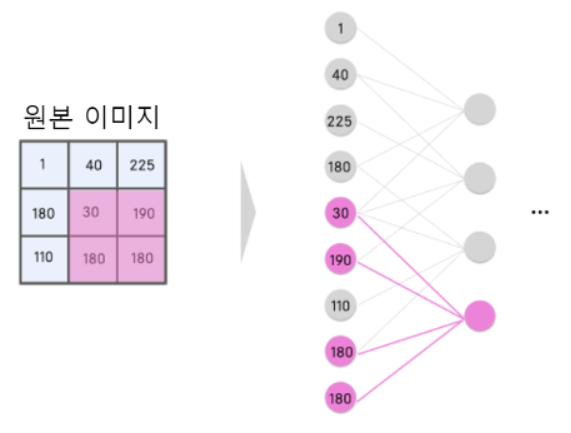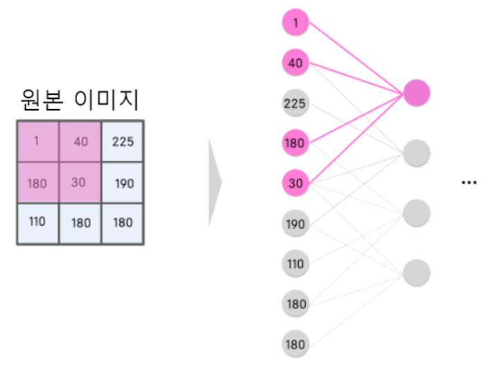 이미지의 경우, 가까이 있는 주변의 연결되어 있는 픽셀 사이의 관계가 중요하다는 것을 알고 있기 때문에, 그 이외의 뉴런의 연결을 굳이 끊어 버리는 것으로, 정밀도를 좋게 하고자 하는 아이디어적 해법입니다.
