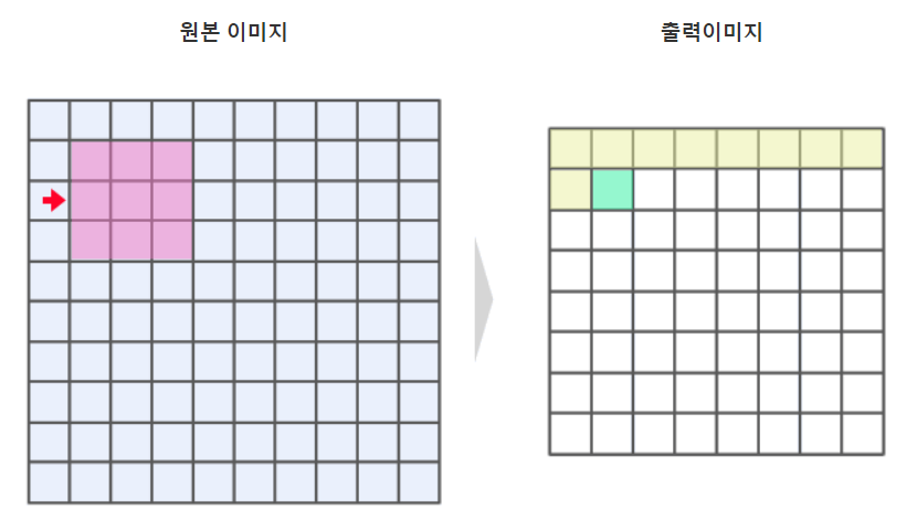 이 필터(커널)를 이용한 연산의 좋은 점은, 이미지를 일일이 픽셀마다 보는 것이 아니라, 필터 사이즈만큼 모아서 처리하는 것으로, 이미지로서의 특성을 남기면서 처리할 수 있다는 것입니다.