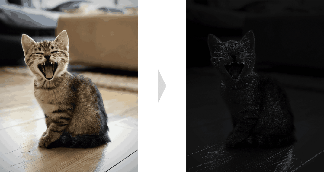 예를 들어 2차 미분 계수를 사용하여 이미지의 색상 변화를 감지하는 라플라시안 필터를 사용하면 윤곽선을 감지할 수 있습니다.