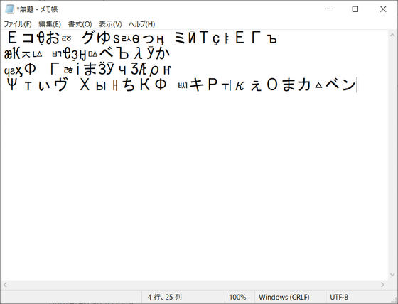 메모장에 붙여 넣으면 이렇게 됩니다. 원래의 문장이 전혀 알 수 없는 문자열로 변환되었습니다.