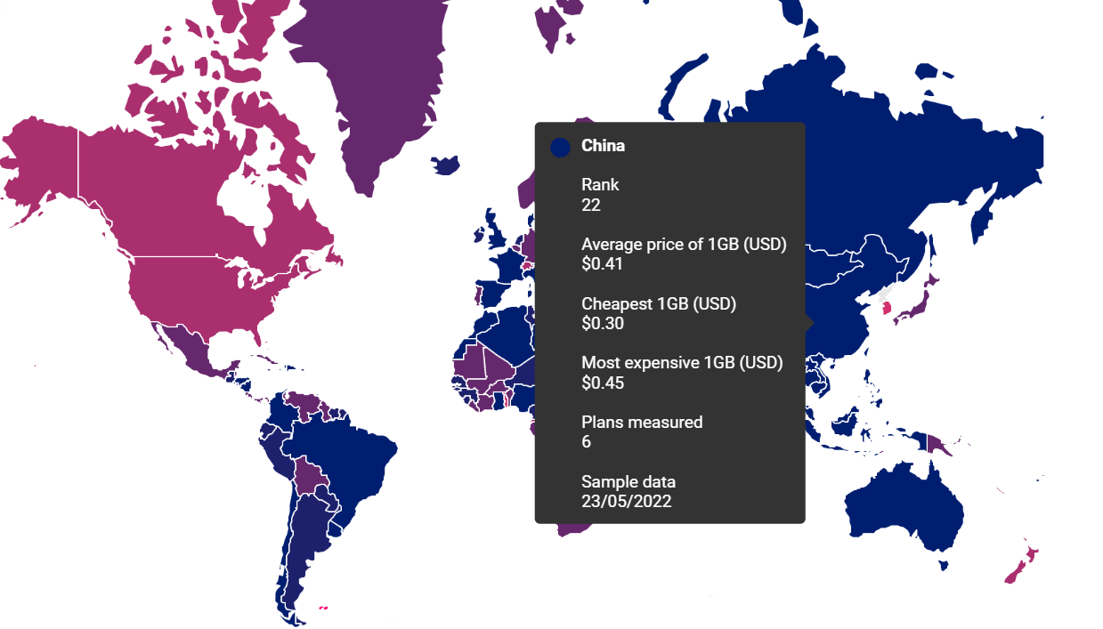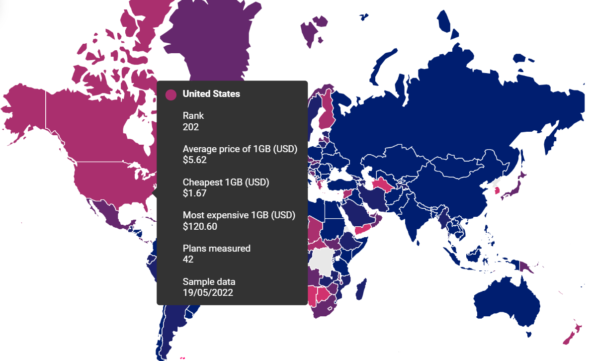 Worldwide Mobile Data Pricing 2022 | 1GB Cost in 233 Countries