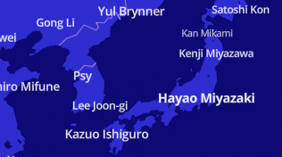 이웃 일본에서는 미야자키 하야오가 보이네요... 위쪽 중국에는 공리도 보이고요...