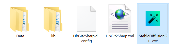 다운로드한 ZIP 파일을 아무 곳에나 풀고, 폴더 안의 "StableDiffusionGui.exe"를 실행합니다.