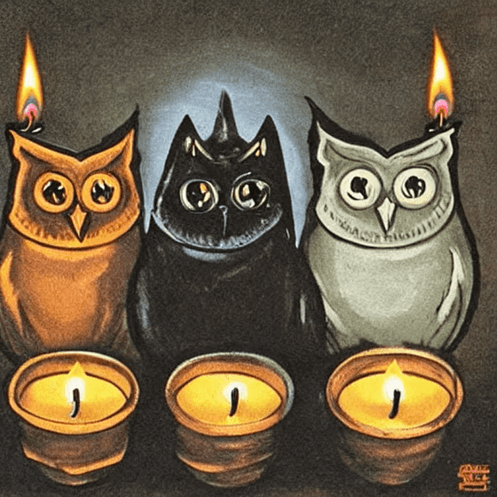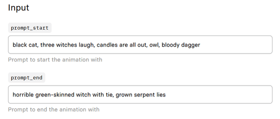 문장뿐만 아니라 단어를 쉼표로 구분하여 입력해도 됩니다. 이번에는 시작 프롬프트를 'black cat(검은 고양이), three witches laugh(웃는 3명의 마녀), candles are all out(꺼진 촛불), owl(올빼미), bloody dagger(피투성이의 단검), 종료 프롬프트를 "horrible green-skinned witch with tie(무서운 녹색 피부의 마녀), grown serpent lies(누워 있는 큰 뱀)"이라고 입력해 보았습니다.