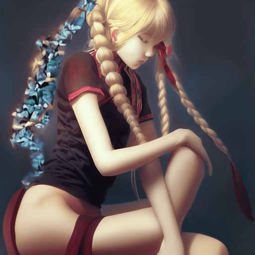 "latent noize"는 마스크 부분을 노이즈로 채워 버리는 것. 땋은 머리가 주변과는 완전히 다른 색과 패턴으로 대체됩니다.
