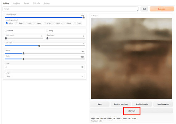 생성 도중에 멈추고 싶을 때는 「Interrupt(중단)」버튼을 누릅니다.