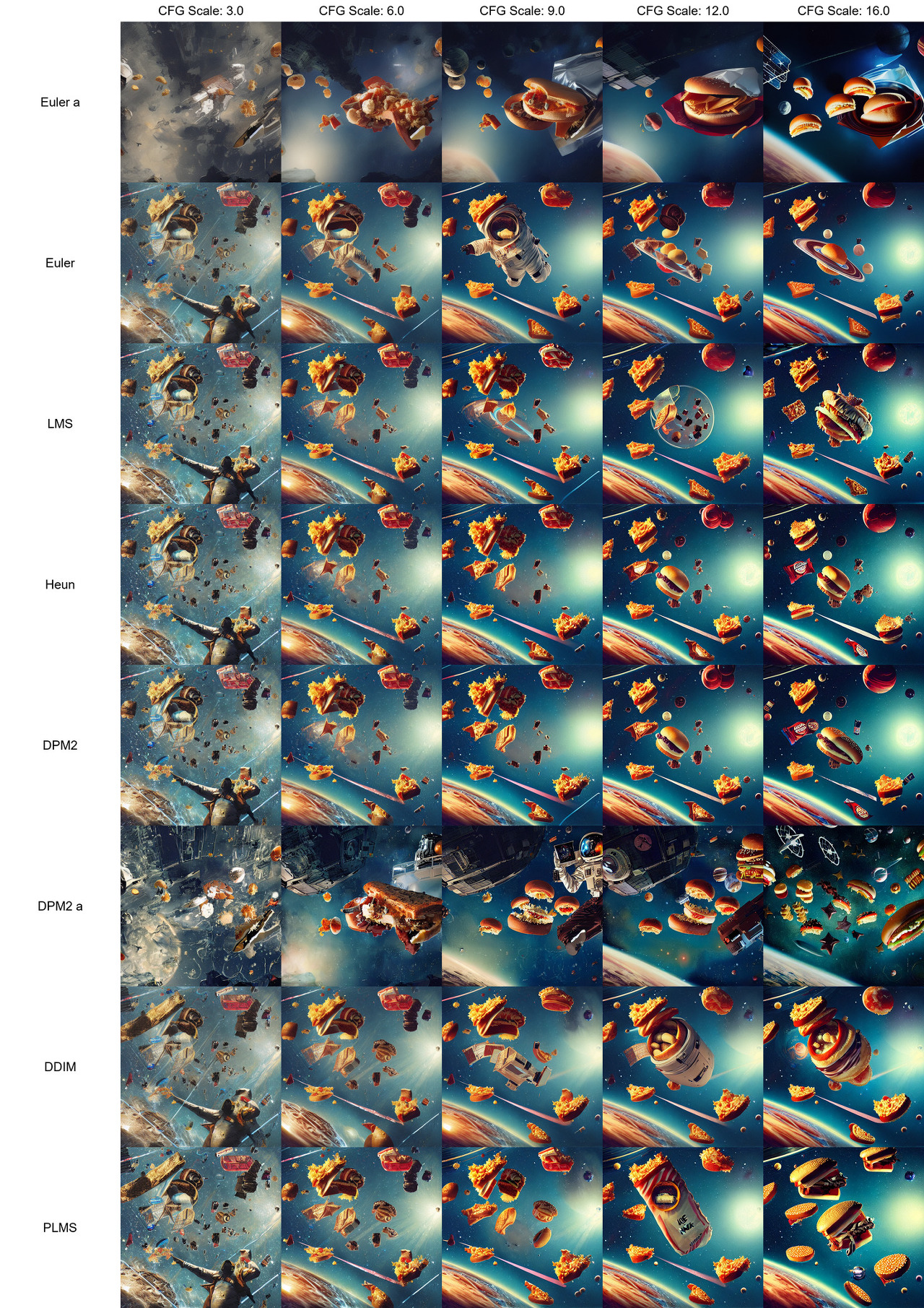 CFG Scale은 다른 Stable Diffusion의 프런트 엔드와 마찬가지로 프롬프트의 지시에 얼마나 따르는지를 나타내는 값으로, 크게 하면 할수록 지시에 따른 내용이 되지만 그림 자체가 망가지기 쉽습니다. 일반적으로는 7~11이 적당하다고 되어 있습니다.