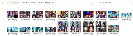 txt2img-grids는 한 번에 여러 이미지 생성을 수행했을 때의 이미지 목록을 저장합니다.