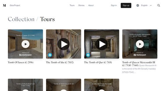 또한 Giza Project에서는 기자의 대 피라미드 이외의 유적에 대해서도 3D 투어를 제공하고 있으며 공식 사이트에서 "Tomb Of Iasen", "Tomb of Queen Meresankh III"등을 견학할 수 있습니다.