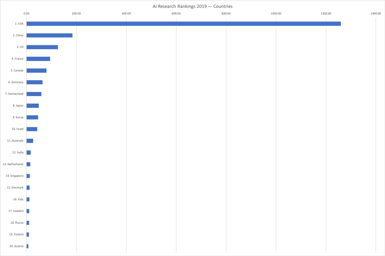 2019년의 AI 연구를 선도하는 20개국
