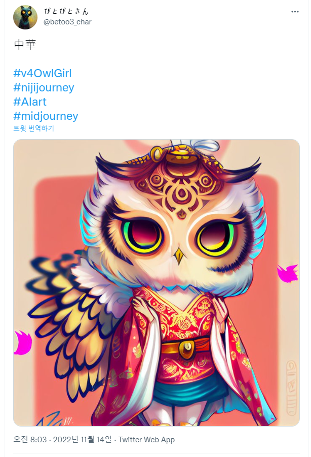 이미 트위터에서는 니지 저니에서 생성된 이미지가 게시되어 있어, 그 정밀도를 알 수 있습니다.