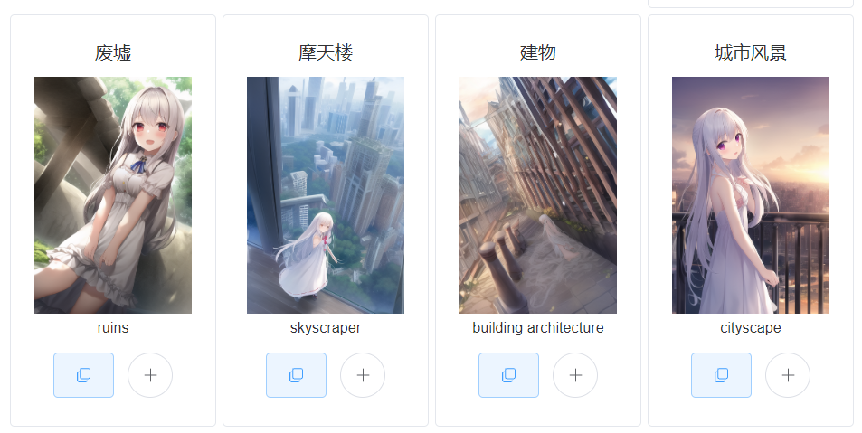 마포백과사전에는 '프롬프트의 조각'뿐만 아니라 완성된 프롬프트도 등록되어 있습니다. 궁금한 이미지 아래 버튼을 클릭하면 상단에 프롬프트가 표시되는 동시에 클립보드에도 복사가 됩니다.