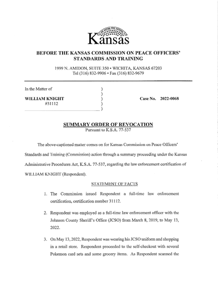 캔자스 주에서 보안관의 기준 설정과 훈련을 담당하는 KS·CPOST 에 따르면 나이트 씨는 2019년 3월부터 2022년 5월까지 존슨 군의 보안관 사무소에 근무한 인물입니다.