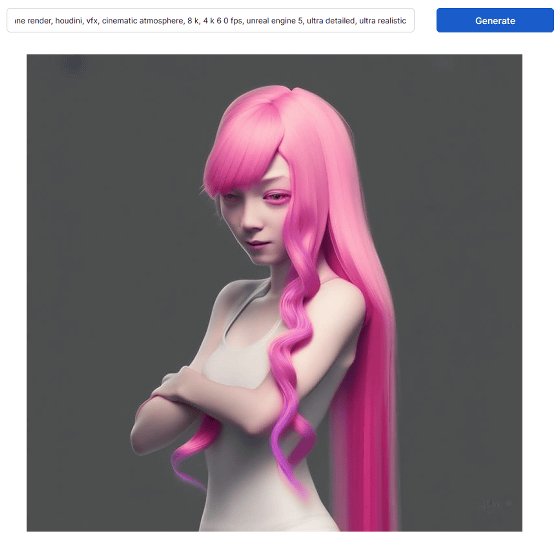 「girl with long pink hair, instagram photo, kodak, portra, by wlop, ilya kuvshinov, krenz, cushart, pixiv, zbrush sculpt, octane render, houdini, vfx, cinematic atmosphere, 8 k, 4 k 6 0 fps , unreal engine 5, ultra detailed, ultra realistic」이라는 프롬프트를 입력하여 Stable Diffusion 2.0에서 생성한 이미지가 아래입니다.