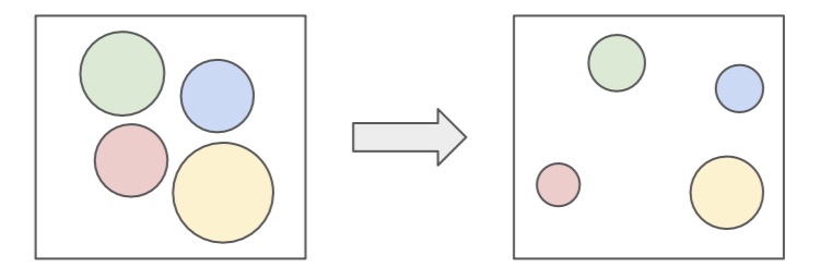 직관적으로 어느 공간에서 데이터셋이 다음과 같은 특성을 가지면 입도가 작은 데이터셋이라고 합니다.