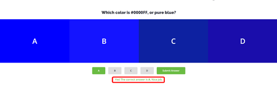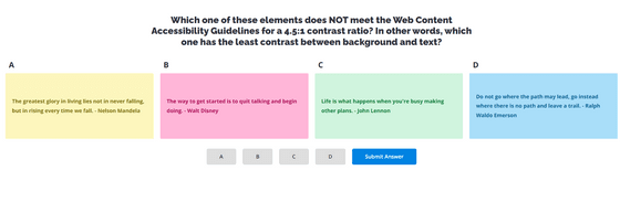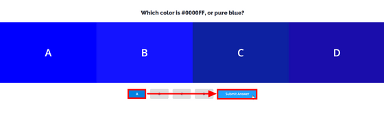 문제가 제시되면 A ~ D 중에서 정답이라고 생각하는 것을 선택한 다음 Submit Answer를 클릭합니다.