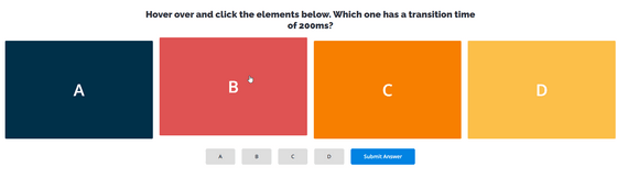 질문 7: 커서를 맞추어 클릭했을 때의 트랜지션 이펙트 시간이 200ms인 것은 어느 것입니까?