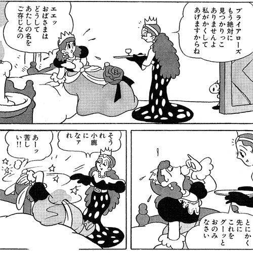 이 작품보다 정확히 1년 전인 1948년 6월에 신작 단행본으로 후지출판으로부터 간행된 「숲의 4 검사」에 이어지는 데즈카 오사무의 서양풍 동화 제2탄입니다. 인간인 공주와 아기 다람쥐가, 서로 변신하여 입장을 바꾼다는 설정이나, (밀크 - 섬의 마녀)의 묘사 등, 이후 「리본의 기사」로 이어지는 원형이라고도 할 수 있는 아이디어가 곳곳에 엿보입니다.