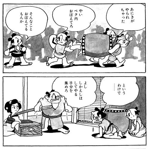 이 작품은, 토코도에서 새로 그려서 발매된 단행본으로써, 데츠카 오사무의 첫 본격 장편 시대극입니다. 단행본은, 처음엔 그림판으로 찍어서 나올 예정이었기 때문에, 원고를 인쇄 사이즈와 같은 치수로 그리고 있었습니다. 그림판이란 것은, 출판사 직원이 원고의 그림을 덧그려서 제판(인쇄판을 만드는 일)용 원판을 작성하는 원시적인 제판 방법으로, 초기의 데츠카 오사무의 단행본의 대부분이 이 형식으로 제판되고 있었습니다. 그런데, 집필 도중에 사진제판으로 나오기로 결정되어서, 서둘러 원고를 인쇄 사이즈보다 크게 그렸습니다. 그 때문에, 전반과 후반의 그림밀도나 선이 달라서, 이 작품은 우연히 인쇄출판 기술의 과도기를 체현(體現)하게 되었습니다.