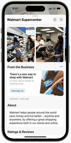Apple Business Connect를 사용하면,「공식 사이트 링크」,「전화 번호」,「주문 버튼」등을 카드 내에 설정 가능하며, 상점 및 제품의 썸네일 사진을 추가할 수 있습니다.