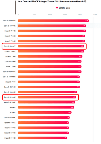 인텔은 2023년 1월 3일에 13세대 인텔 코어 프로세서인 Core i9-13900T 를 출시했습니다. 그런 Core i9-13900T와 전 세대 플래그십 CPU Core i9-12900K의 벤치마크 비교 결과가 해외 미디어 Wccftech 에 의해 공개되었습니다.