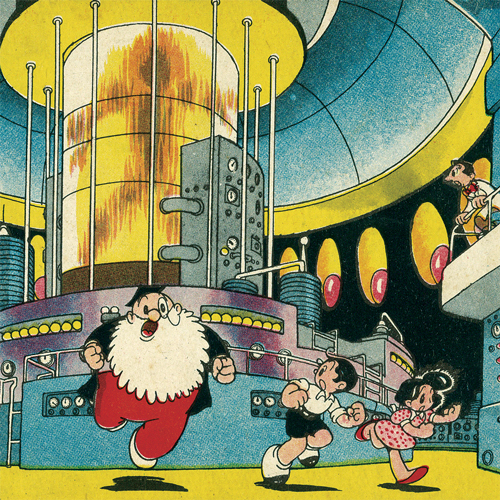 1950년대는, 월간 만화잡지가 급격하게 증가하던 시대였습니다. 각 잡지마다, 본지와는 별도로 매월 단편만화를 별책 부록으로 넣고 있어서 결국 그 개수를 가지고 서로 경쟁하게 됩니다. 이 만화는, 그런 별책부록 경쟁시기의 초기 무렵에 그려진 작품입니다. 화석 인간, 로봇 동물, 타임머신 이라고 하는 SF적인 요소가, 앞 뒤 맥락 없이 마구 등장하여, 나중의 라이온 북스 시리즈와 같은 교묘한 구성력으로 그려진 단편들과는 전혀 다른 인상의 작품이 되었습니다.