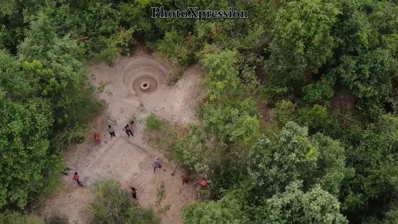 예를 들어,「원시적인 방법으로 집을 건축하는 영상」의 촬영 현장을 드론 촬영한 영상에서는, 현장에서 작업하는 인부들의 모습이 기록되어 있습니다.