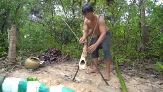 또한, 거짓말의 결정적 증거가 아래. 이 영상에는 건축한 집의 수영장에 대나무를 사용하여 물을 끌어오는 모습이 수록되어 있습니다.