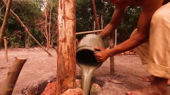 또, 아래의 영상에서는 기둥을 지면에 고정하기 위해서 콘크리트와 같은 것을 만드는 장면이 등장.