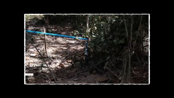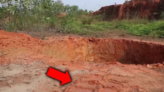 영상에서는「남성이 막대기를 이용해 파고 있다」라고 표현되었지만, 화면 우측에는 남성의 막대와 폭이 일치하지 않는 흔적이 다수 남아 있습니다.
